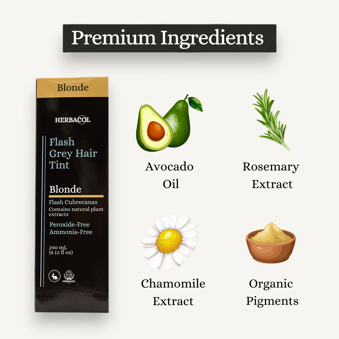 Our ‘Flash’ Gray Hair cover is one of the best products you can use to cover your gray hair. Our combination of pure natural plant extracts and organic pigments make it a perfect and natural alternative. Our hair dye is especially made for people with allergic reactions to traditional hair dyes, those who have a sensitive scalp, expecting mothers and those who are going through medical treatments.